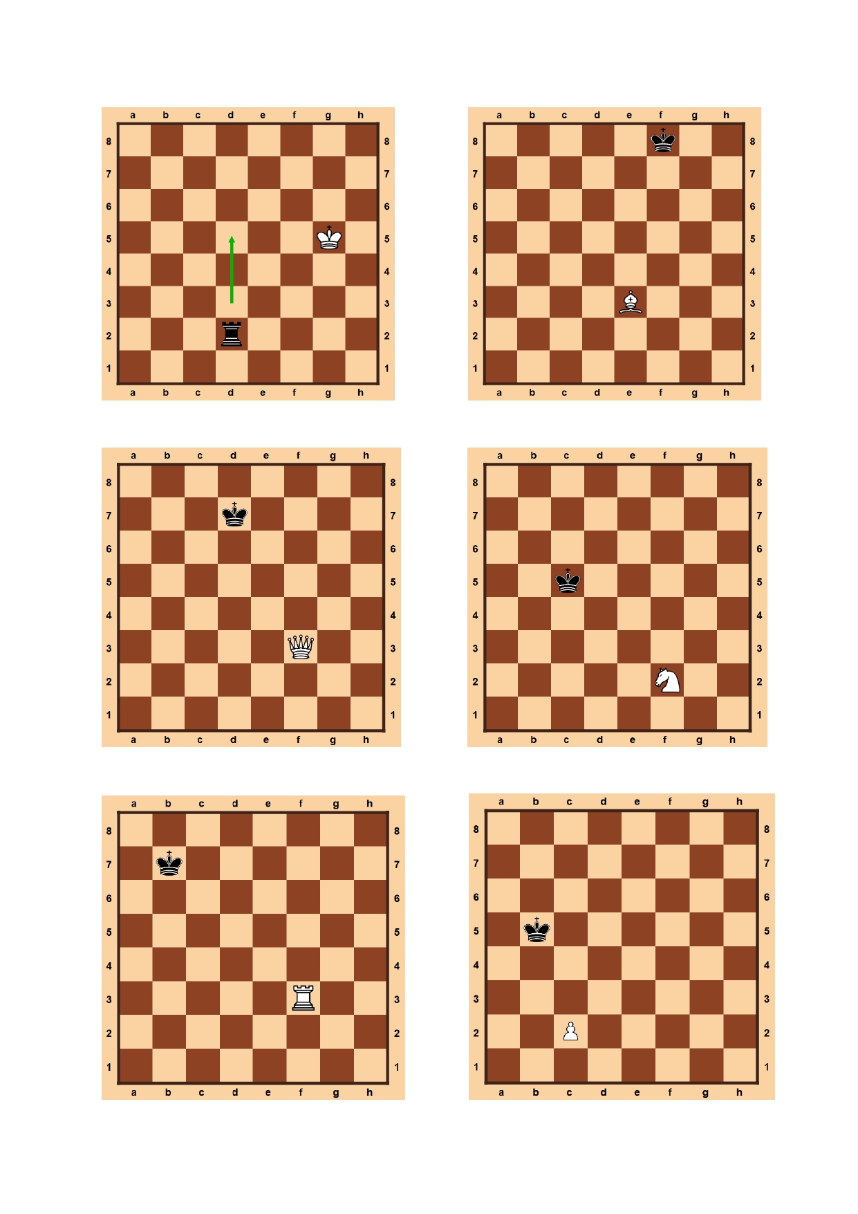 После объяснения понятия шаха мы переходим к опросу и практической работе. Используем демонстрационную доску и примеры позиций (Пример Диаграмма 1). Ставим простые позиции с разными фигурами и последовательно отрабатываем это действие со всей группой.