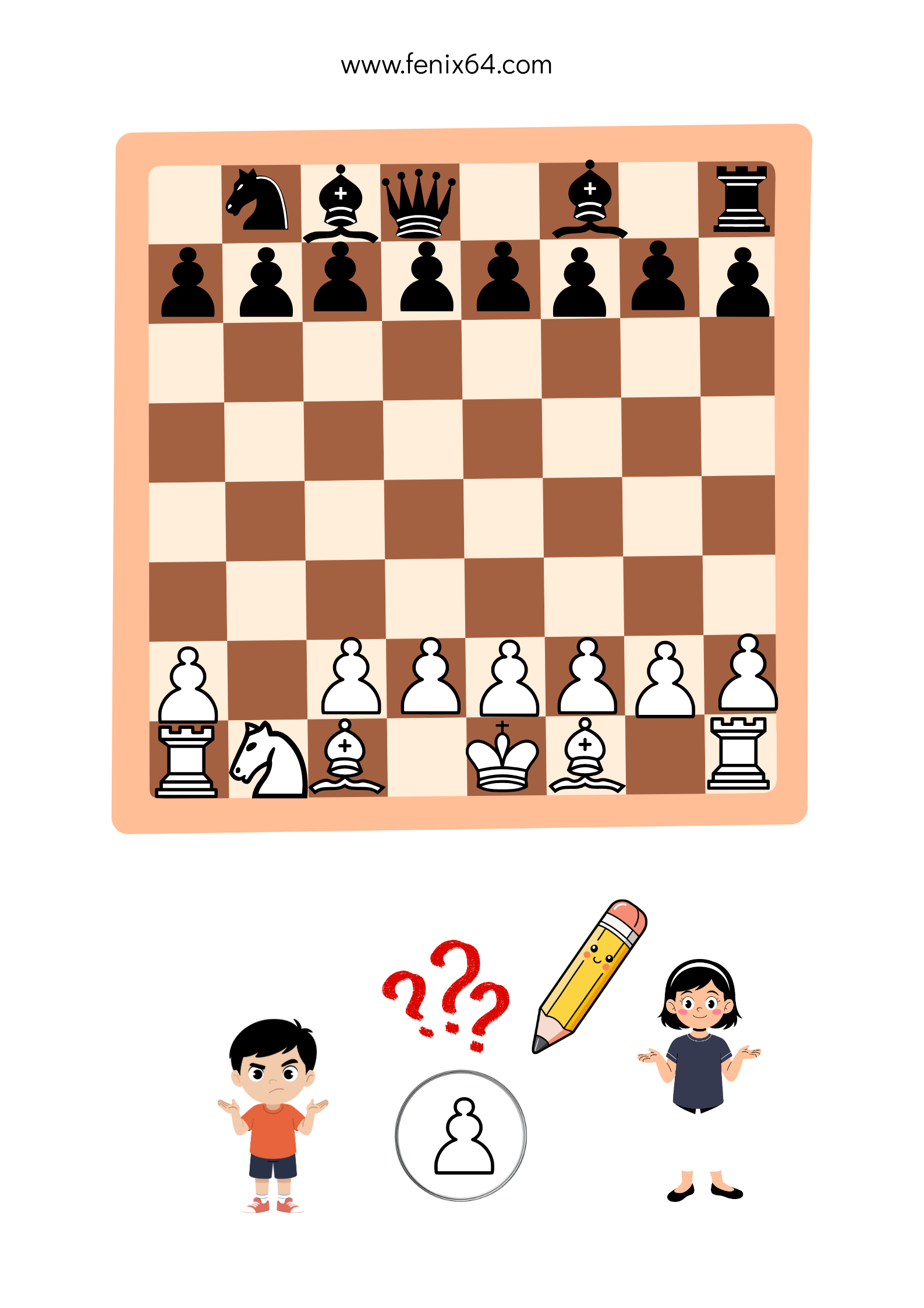 Основная сложность в расстановке фигур — это король и ферзь. Здесь можно использовать разные способы объяснения.